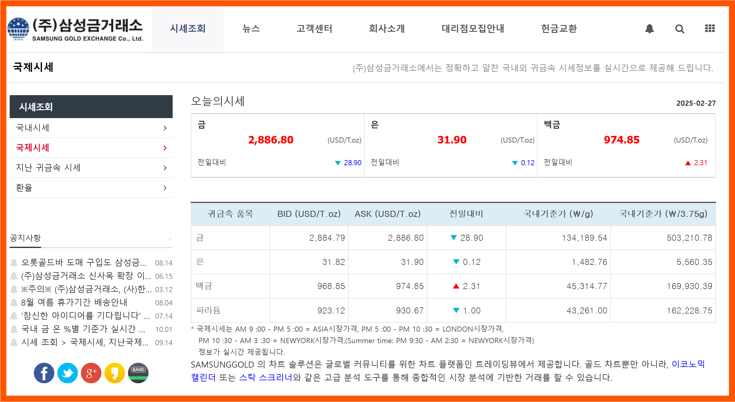 - 삼성금거래소: 국제 시세 및 국내 기준가 제공