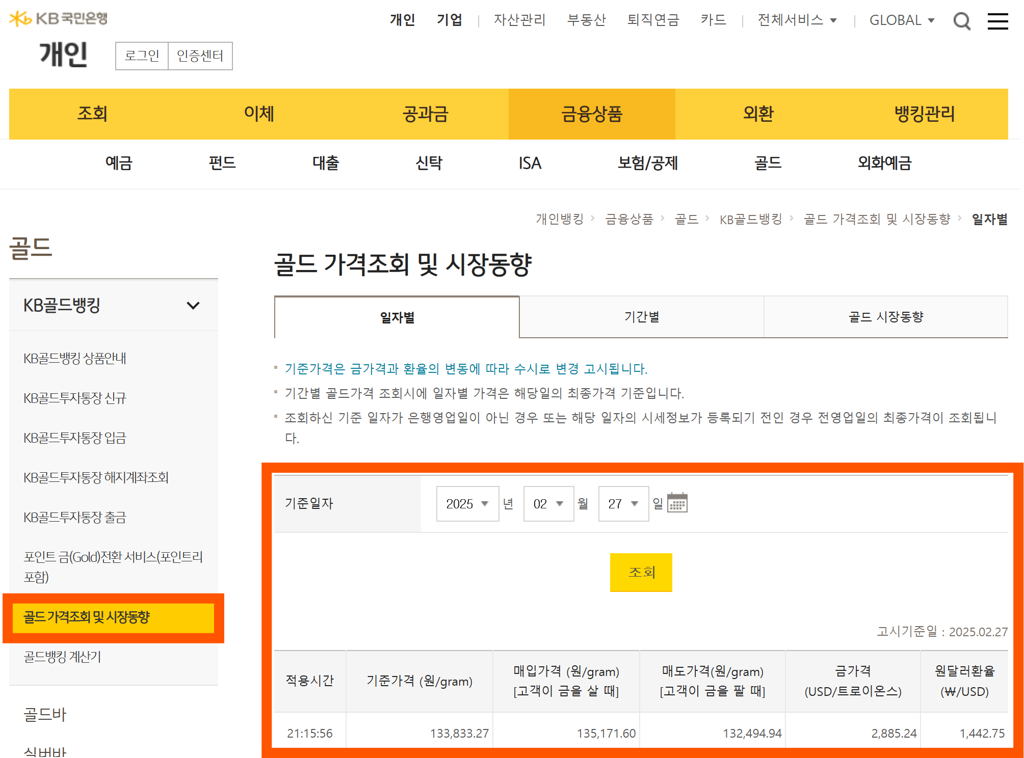 2. KB국민은행 | 은행 기준 금 시세 제공